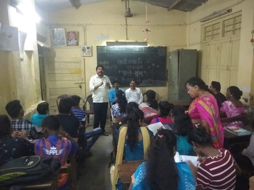 स्वामी शामानंद नाईट हायस्कूल आणि ज्युनिअर कॉलेज घाटकोपर येथे गुरू पौर्णिमा साजरी करताना.
