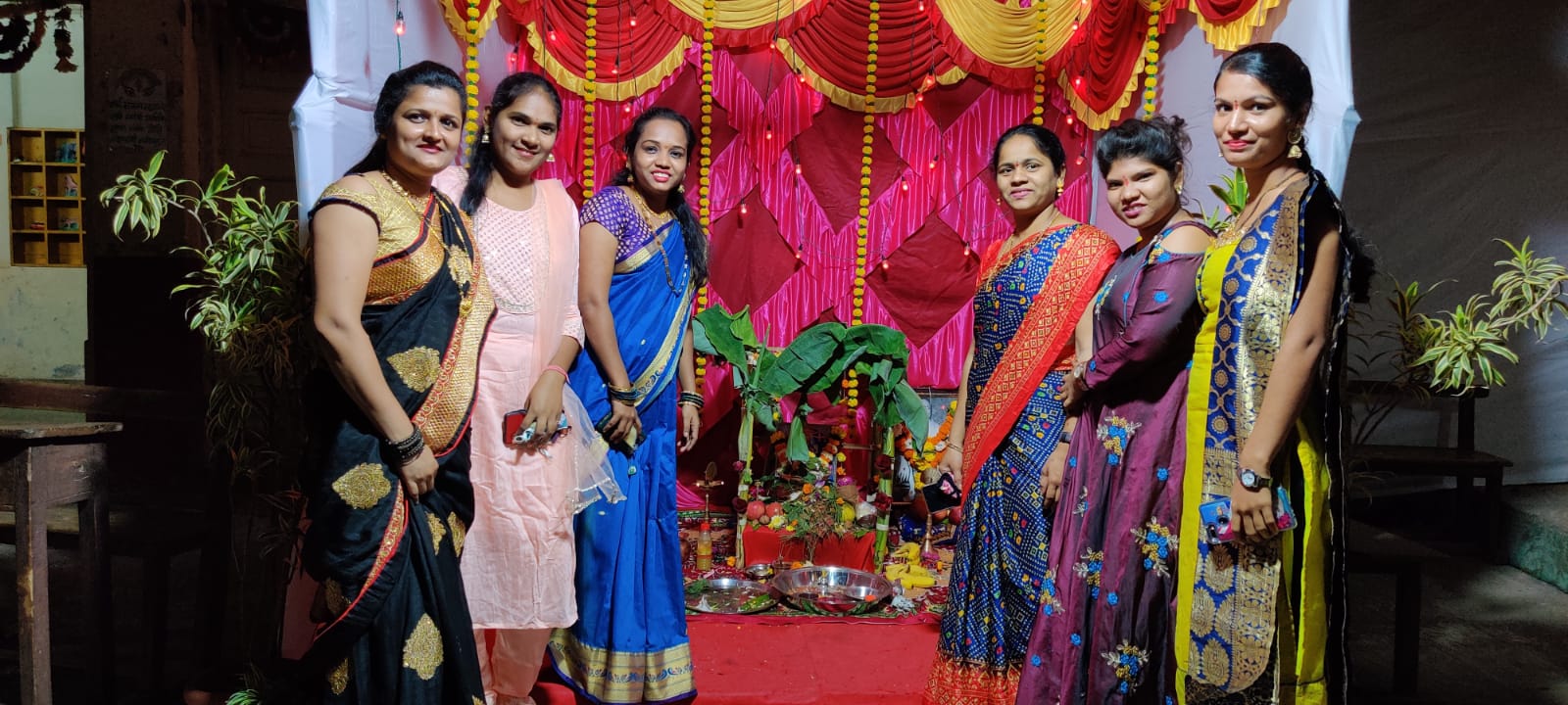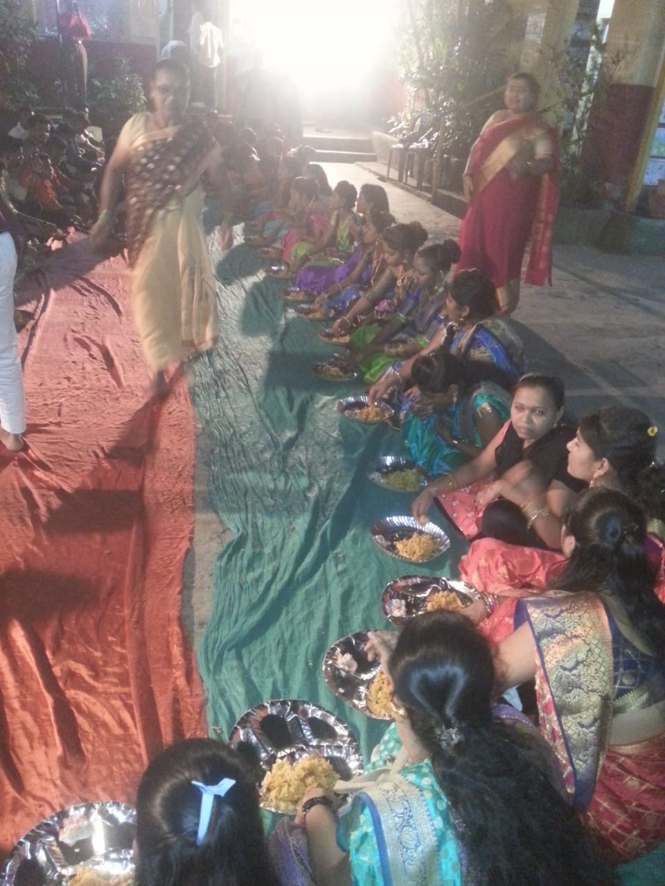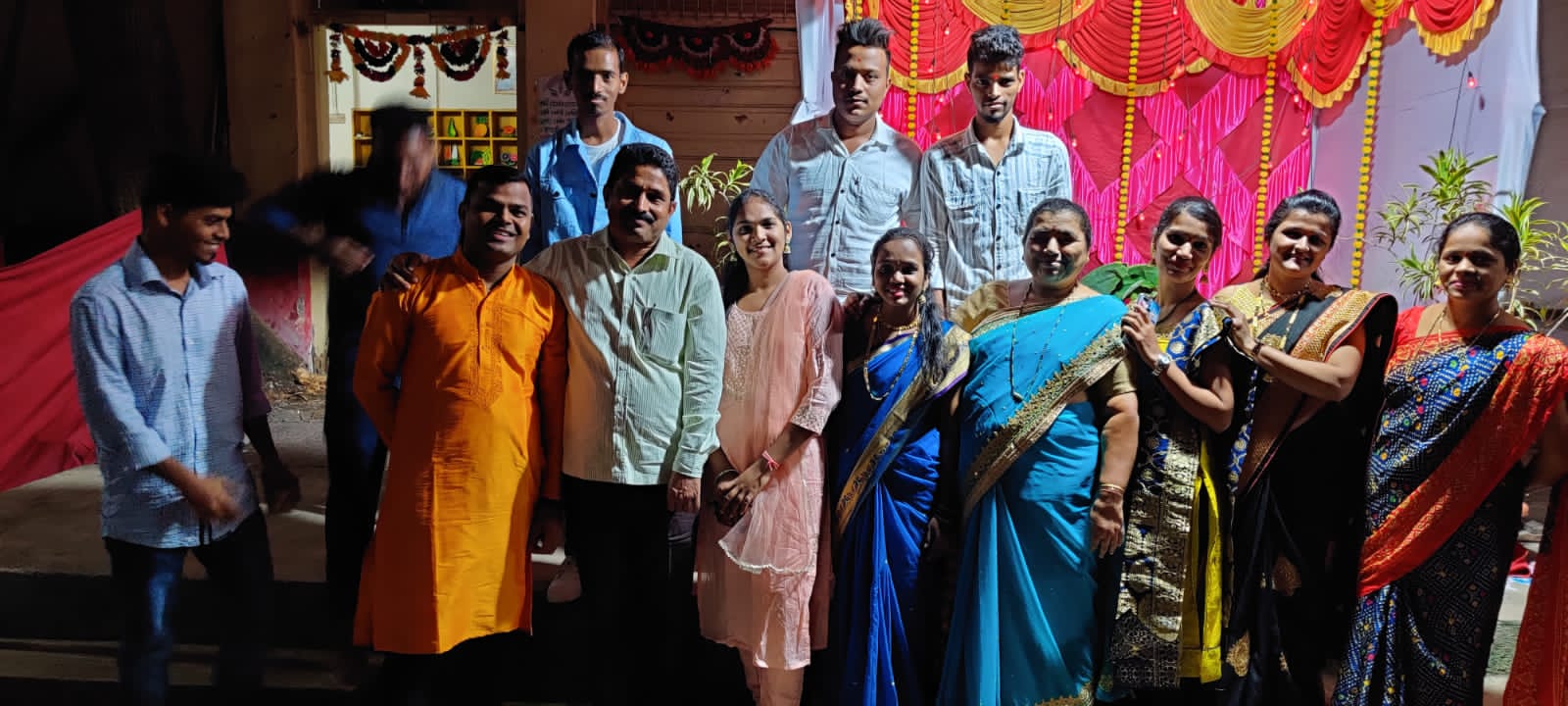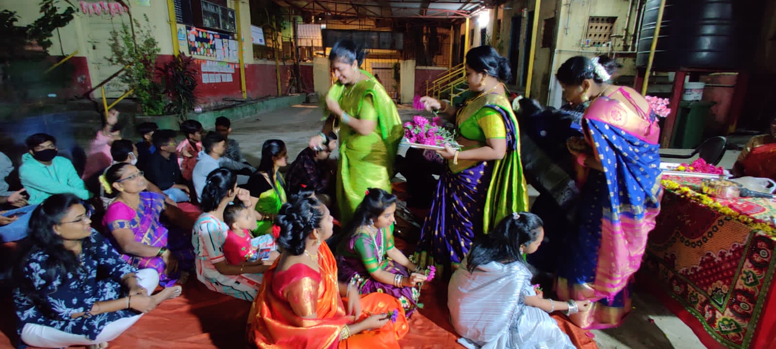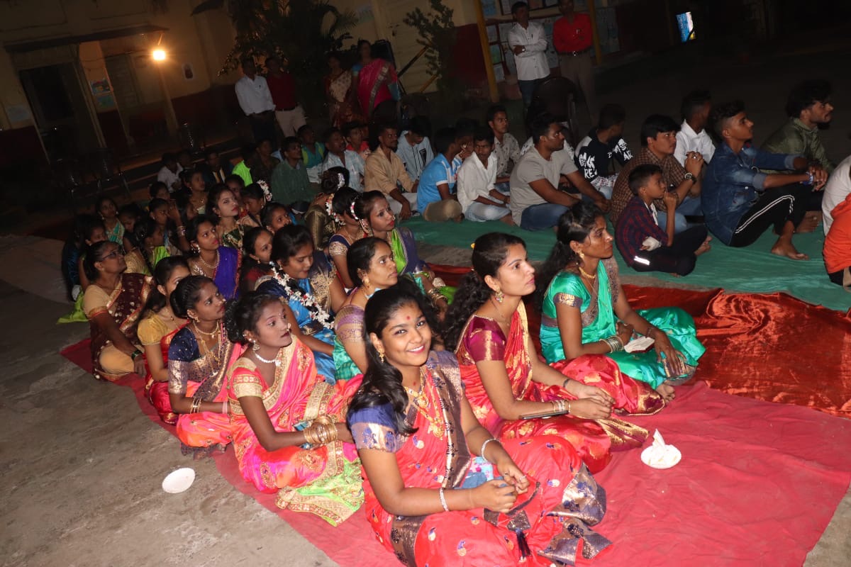 शाळेत हळदी कुंकू समारंभात उत्साहाने सहभागी झालेले विद्यार्थी.