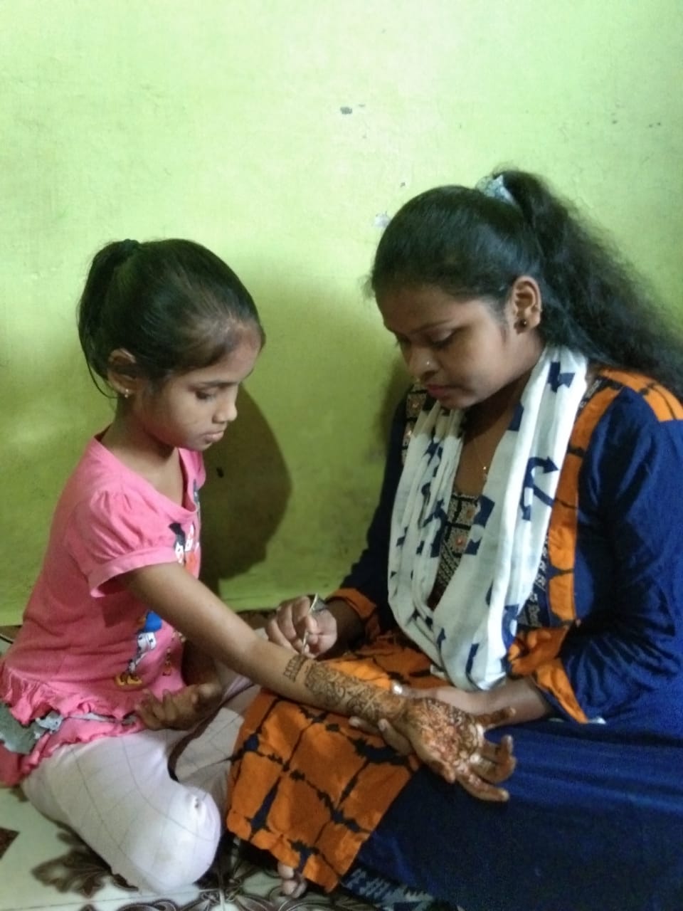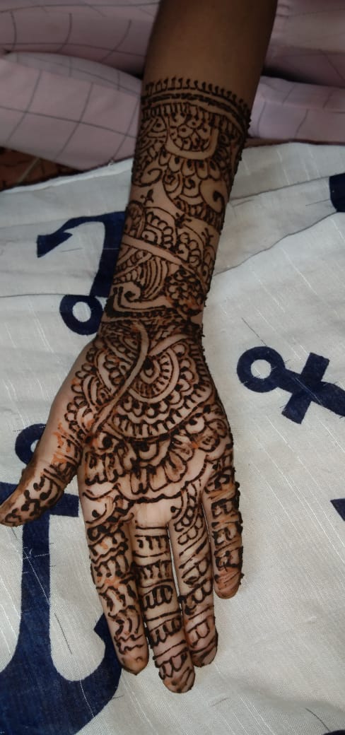 ७. मेहंदी स्पर्धेत भाग घेताना दहावीची विद्यार्थिनी प्रियंका सोनवणे