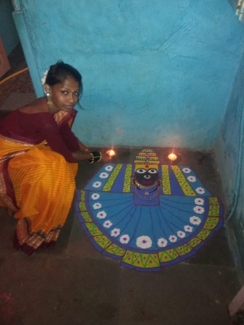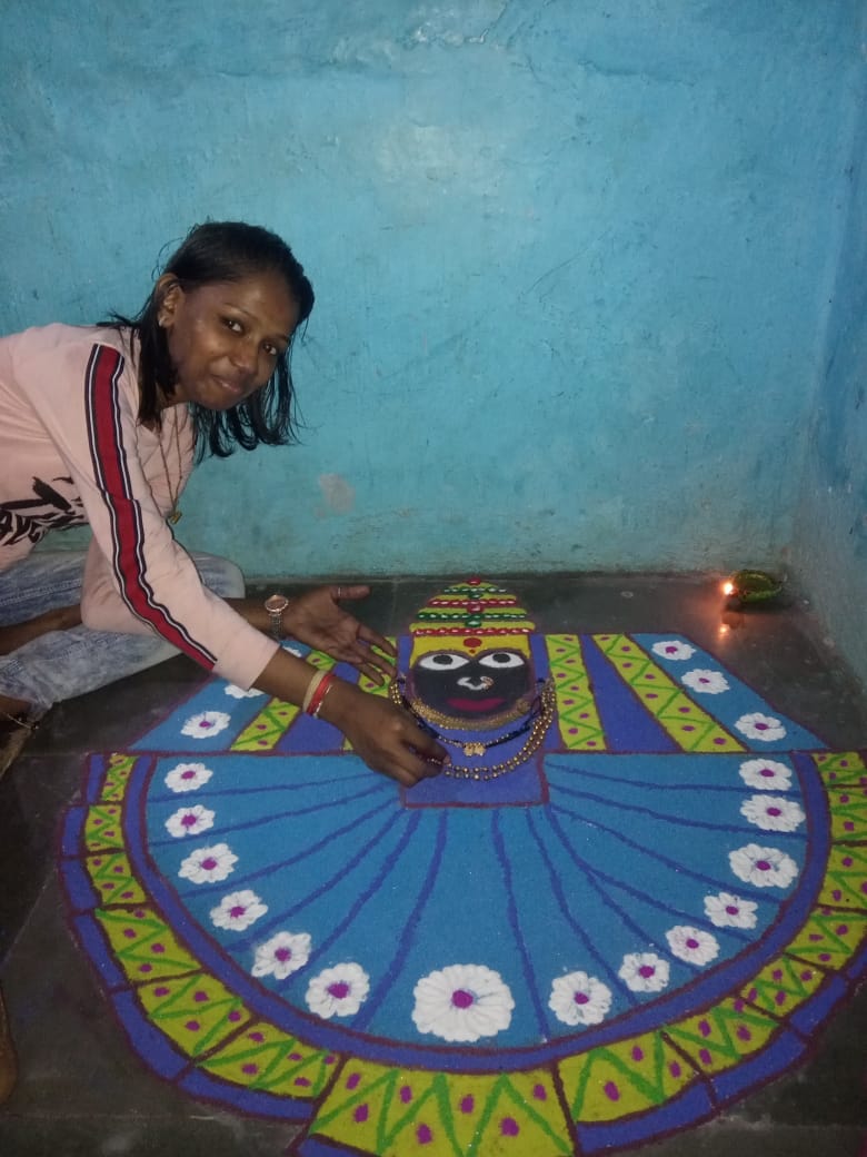 ८. रांगोळी स्पर्धेत भाग घेताना इयत्ता अकरावीची विद्यार्थिनी हिना सिद्दिकी