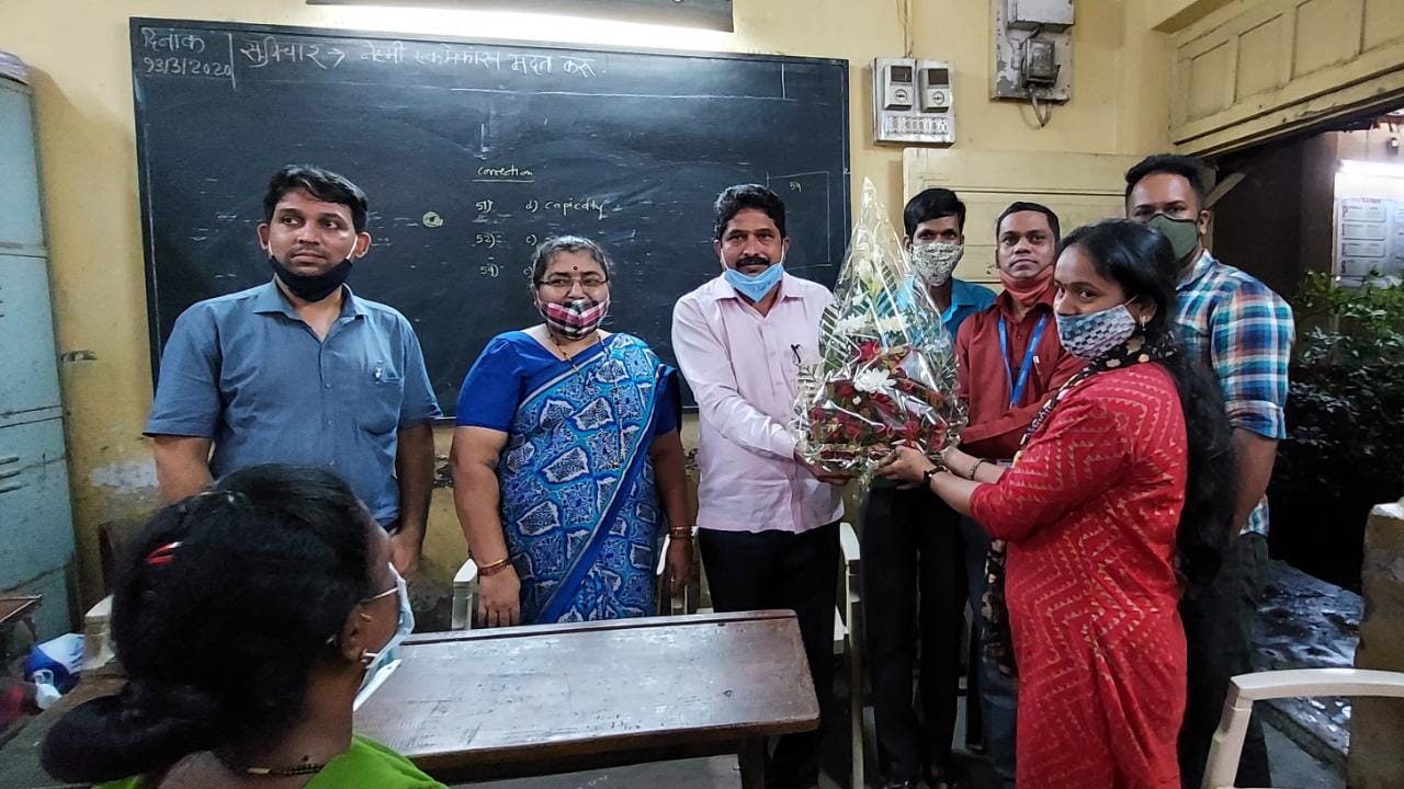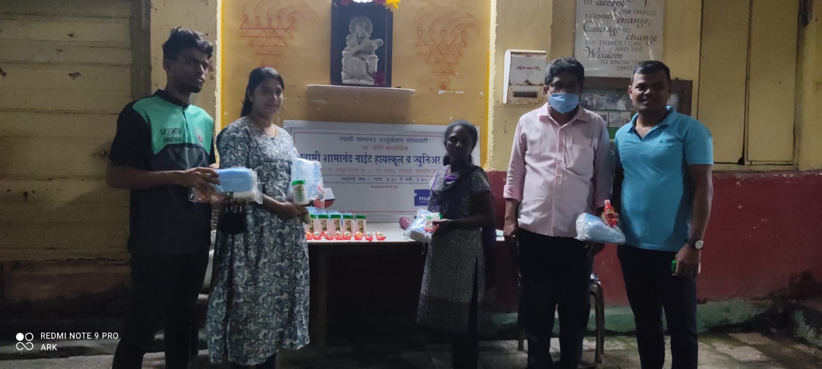 मासूम संस्थेकडून रात्र शाळेच्या विद्यार्थ्यांना हँडवॉश, सॅनीटायझर आणि मास्कचे वाटप करताना.