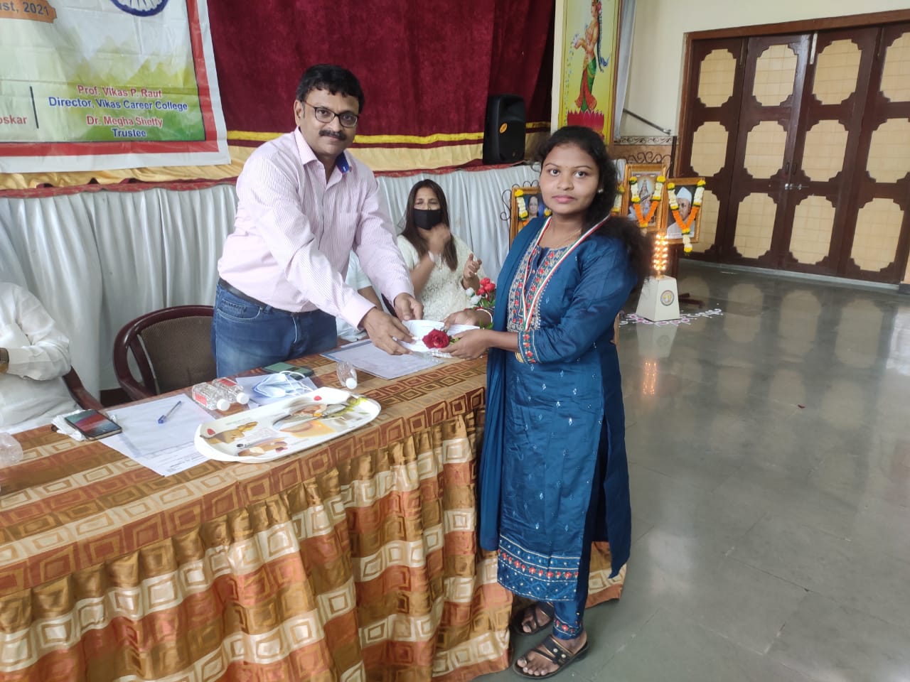 माध्यमिक व उच्च माध्यमिक शालांत प्रमाणपत्र परीक्षेत प्रथम क्रमांकाने उत्तीर्ण झालेल्या विद्यार्थ्यांचा संस्थेकडून सत्कार करताना.